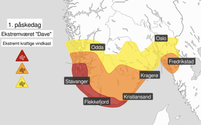 Meteorologisk institutt har sendt ut varsel om at ekstremværet "Dave" rammer oss søndag 1. påskedag. For Færder gjelder...