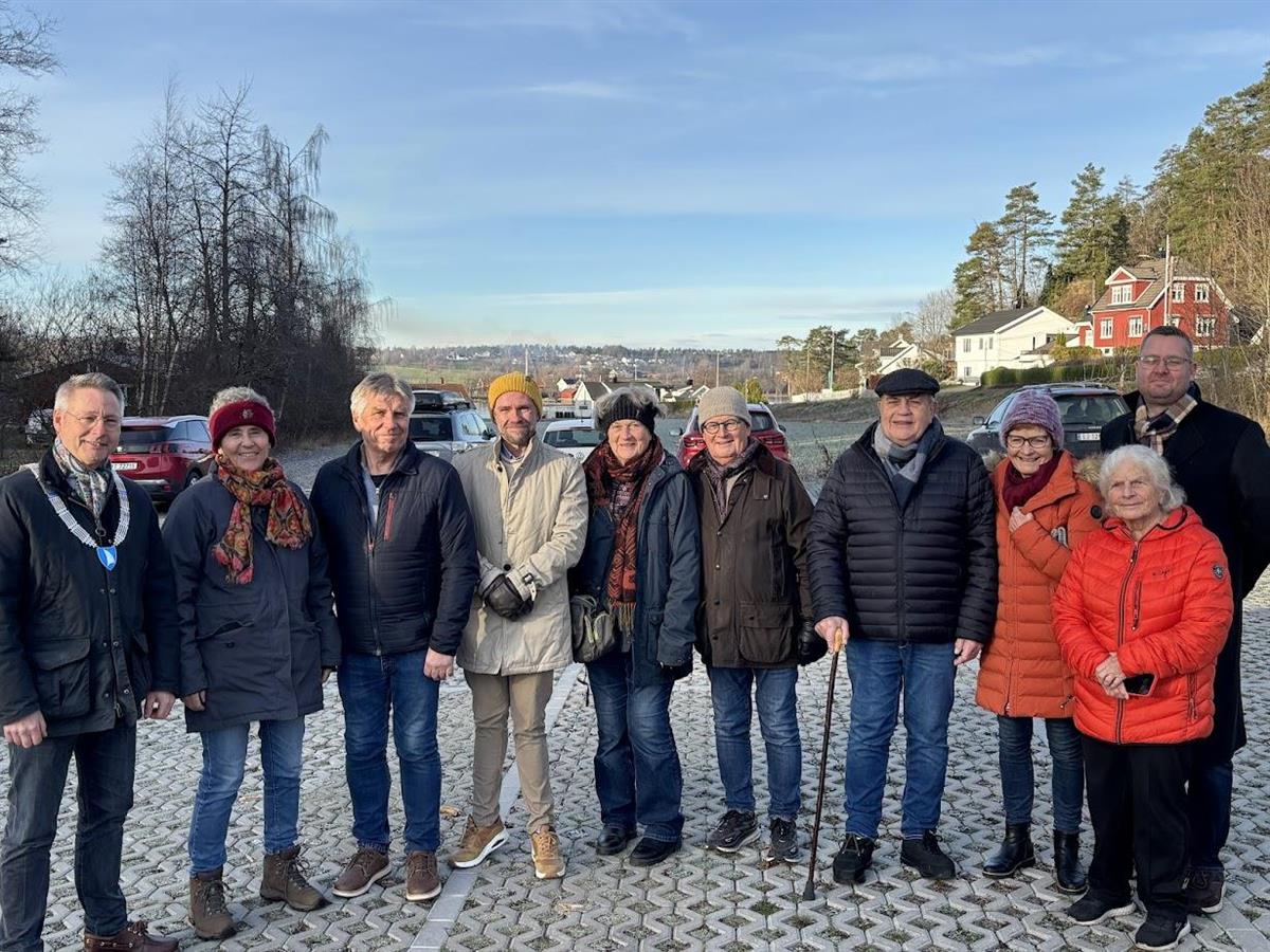 Tom Mello (til venstre, H), Karen Lie (Ap), Gunnar Fredriksen (Frp), Øystein Toft (kommunalsjef for teknikk og miljø), Tone Kalheim (Felleslista Rødt/SV), Pål Syse (Ap), Stein Engh (Nøtterøy historielag), Ranveig Roberg (Nøtterøy Rotary), Vigdis Kittang Ramstad (Nøtterøy historielag og Anders Mathisen (Frp)Takk til ildsjeler