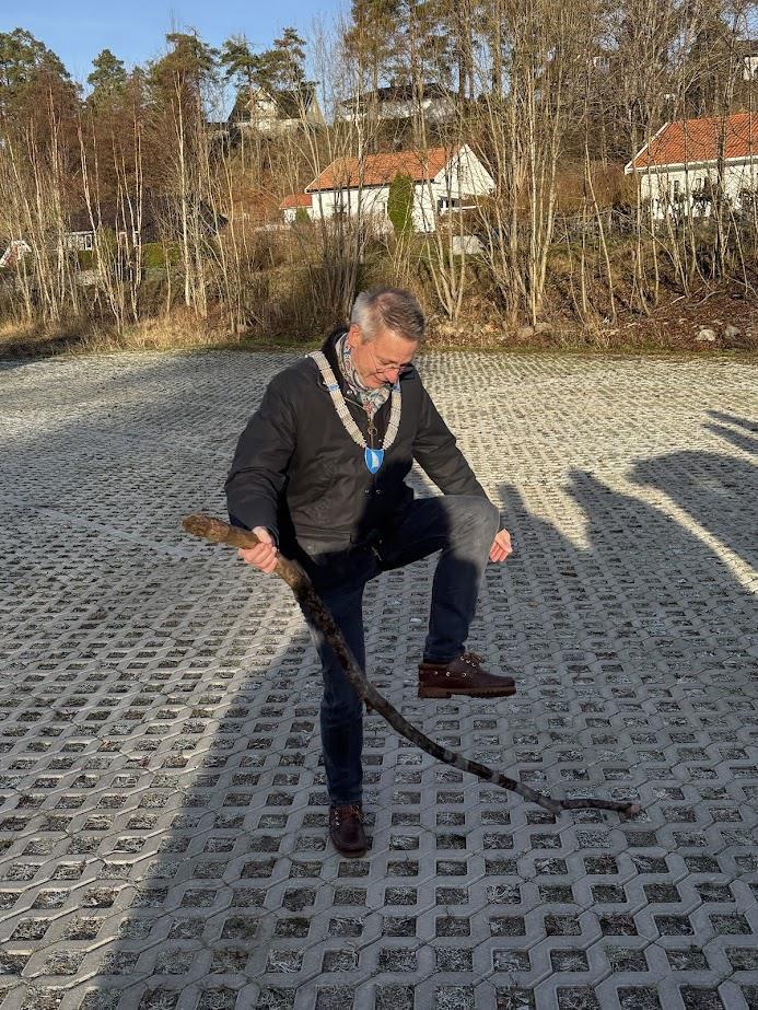 Ordfører Tom Mello knekket en kvist i stedet for å klippe en snorDen nye parkeringsplassen gir rom for 44 biler og har allerede vært i bruk en stund. Likevel var det først nå den formelle åpningen fant sted etter en lang prosess.