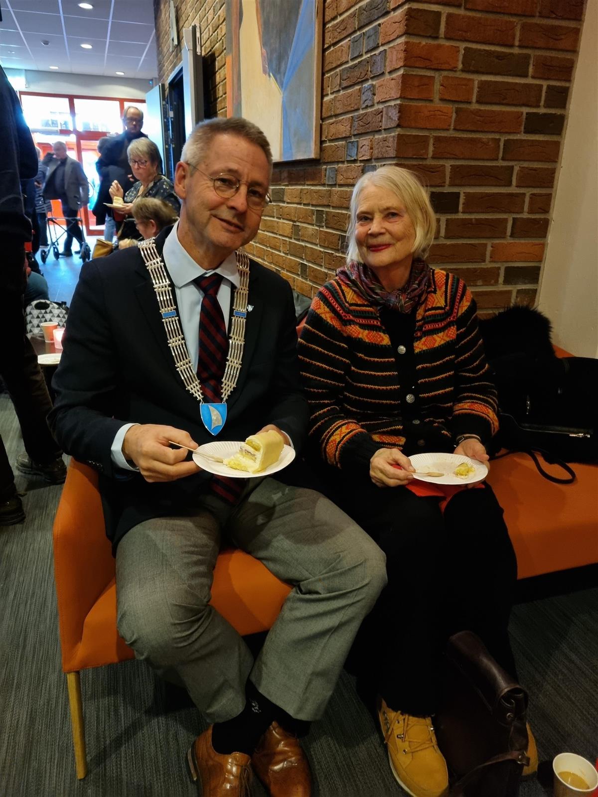 Etter konserten inviterte ordføreren alle til kaffe og marsipankake i foajéen – en hyggelig avslutning på en stemningsfull formiddag.