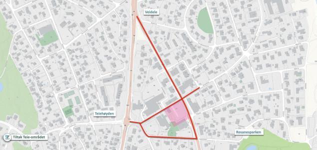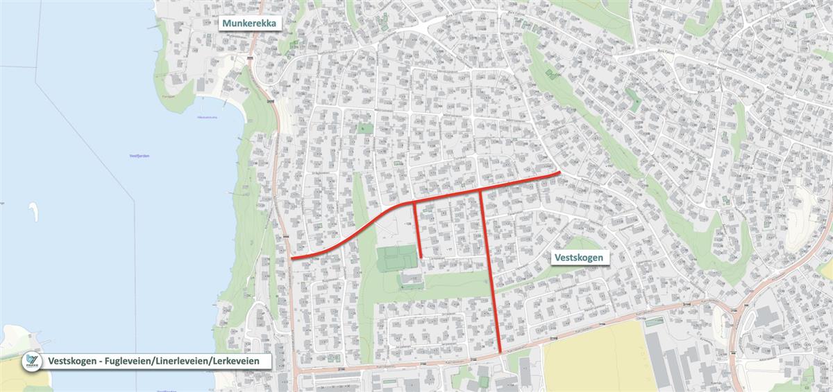 Bypakke Tønsberg-regionenBypakke Tønsberg-regionen omfatter langt mer enn ny fastlandsforbindelse. Den består av en rekke delprosjekter i både Færder og Tønsberg – mange av dem med mål om å redusere miljøbelastning og gjøre hverdagen tryggere og mer tilgjengelig for innbyggerne. På denne siden finner du en samlet oversikt over alle delprosjektene som berører Færder kommune.Snarveier til innhold på sidenOm Bypakke Tønsberg-regionenDelprosjeter i Færder kommuneKart Om Bypakke Tønsberg-regionenOppgaven til Bypakke Tønsberg-regionen er å bygge et helhetlig transportsystem for regionen som er miljøvennlig, robust og effektivt. Bypakke Tønsberg-regionen er et samarbeidsprosjekt mellom Vestfold fylkeskommune, Tønsberg kommune og Færder kommune. Mer informasjon om Bypakke Tønsberg-regionen finner du her.Her kan du lese mer om den nye fastlandsforbindelsen. Delprosjekter i Færder kommune Tiltak Teie-områdetFlere tiltak er planlagt på Teie, langs veiene (merket rødt) og på Teie torv (skravert rosa). Illustrasjon: Hans Christian Haraldsen Moen.Diverse tiltak planlegges langs Smidsrødveien ved Teie for å øke framkommeligheten for buss og tilrettelegging for gående og syklister. Tiltakene må utredes nærmere og vurderes i lys av ny fastlandsforbindelse til Færder. Tiltakene defineres i gatebruksplanen for Teie. Gatebruksplan for Teie er et eget prosjekt i bypakka.Bussholdeplassen «Teie torv»:Tiltakene defineres i og bekostes av gatebruksplanen for Teie. Holdeplassen er blant de 15 med flest påstigende i Færder kommune.Sykkelparkering ved lokalsenteret Teie (Teie torv):God sykkelparkering er anbefalt i gatebruksplan for Teie. Må følges opp gjennom kommende reguleringsplan for Teie.Type prosjekt: Gang-, sykkel- og kollektivStyringsramme: 151 millioner kroner (2025-kroner)Status for prosjektet: Regulering 2025–2027. Bygging 2028–2029.Veieier/ansvar for prosjektet: Vestfold fylkeskommune og Færder kommuneMåloppnåelse:Tiltaket treffer mange myke trafikanter og har høyt potensial for flere brukere (berører en stor andel av befolkningen).Bidrar til redusert persontransport med bil.Bidrar til en attraktiv by og mer konsentrert arealutvikling i tråd med hovedgrepet i RPBA.Bidrar til økt framkommelighet og/eller økt attraktivitet for gående, syklende og kollektivreiser.Bidrar til et helhetlig, trafikksikkert og sammenhengende transportsystem eller fjerner missing links.Ny gang- og sykkelvei: fylkesvei 3076, Brøtsø - HvasserGang- og sykkelvei fra Ormelet til Risbrua (merket med rødt i kartet). Illustrasjon: Hans Christian Haraldsen Moen.Tjøme; gang- og sykkelvei Ormelet - Risbrua. Kommunestyret på Tjøme har gjort vedtak om at tiltak på Tjøme i forbindelse med Bypakke Tønsberg-regionen er gang- og sykkelvei langs fylkesvei 380 fra Ormelet på Tjøme over Brøtsø til Risbrua på Hvasser, cirka 2 850 meter. Fylkesvei 380 gjennom Ormelet og over Brøtsø har ikke gang- og sykkelvei. I prosjektet inngår:Fortau langs sjøen på Ormelet, cirka 400 meter fra Fagerheimveien til Røssesund Bru (vest).Gang- og sykkelvei over Brøtsø fra Røssesund bru (øst) frem til eksisterende gang- og sykkelvei fra Risbrua på Hvasser til Sandøsund.Prosjektet har ikke en ny løsning over Røssesund bru. Man tenker å bruke eksisterende smale fortau. Type prosjekt: Gang- og sykkelLengde: Cirka 2 850 meterStyringsramme: 88 millioner kroner (2025-kroner)Status for prosjektet: Forprosjekt/oppstart regulering 2026Veieier/ansvar for prosjektet: Vestfold fylkeskommuneMåloppnåelse:Bidrar til økt framkommelighet og/eller økt attraktivitet for gående, syklende og kollektivreiser.Bidrar til et helhetlig, trafikksikkert og sammenhengende transportsystem eller fjerner missing links.Nye gang- og sykkelveier: Lerkeveien, Linerleveien og FugleveienNye gang- og sykkelveier langs hovedaksene i Vestskogen (merket med rødt i kartet). Illustrasjon: Hans Christian Haraldsen Moen.Prosjektet omfatter bygging av gang og sykkelvei på hovedaksene i Vestskogen. Etableringen er en del av tilretteleggingen for myke trafikanter i forbindelse med utbyggingen av Vestskogen barnehage. I tillegg er Linerleveien en viktig skolevei for Labakken skole. Totalt etableres det cirka 1,1 kilometer med gang- og sykkelvei. Ingen av veiene har tilrettelegging for myke trafikanter i dag.Type prosjekt: Gang- og sykkelveiLengde: 1 100 meterStyringsramme: 24 millioner kroner (2025-kroner)Status for prosjektet: Det foreligger vedtatt reguleringsplan. Bygging 2026.Veieier/ansvar for prosjektet: Færder kommuneMåloppnåelse: Det er mange myke trafikanter og høyt potensial for flere brukere.Bidrar til redusert persontransport med bil.Bidrar til økt framkommelighet og/eller økt attraktivitet for gående, syklende og kollektivreiser.Bidrar til et helhetlig, trafikksikkert og sammenhengende transportsystem (fjerne missing links.)Ny gang- og sykkelvei langs Haugsveien på TjømeNy gang- og sykkelvei langs Haugsveien på Tjøme (merket med rødt i kartet). Illustrasjon: Hans Christian Haraldsen Moen.Bygging av cirka 700 meter gang- og sykkelvei langs Haugsveien. Strekningen har ikke tilrettelegging for myke trafikanter i dag. Strekningen er viktig skolevei som i Færder kommunes trafikksikkerhetsplan er markert som særlig farlig og vanskelig skolevei.Type prosjekt: Gang- og sykkelveiLengde: 700 meterStyringsramme: 12,6 millioner kroner (2025-kroner)Status for prosjektet: Det foreligger vedtatt reguleringsplan. Bygging i 2026 og 2027.Veieier/ansvar for prosjektet: Færder kommuneMåloppnåelse: Bidrar til redusert persontransport med bilBidrar til økt framkommelighet og/eller økt attraktivitet for gående, syklende og kollektivreiser.Bidrar til et helhetlig, trafikksikkert og sammenhengende transportsystem (fjerne missing links).Ny gang- og sykkelvei mellom Breidablikkveien og Nesskogen idrettsparkNy gang- og sykkelvei mellom Breidablikkveien og Nesskogen idrettspark (merket med rødt i kartet). Illustrasjon: Ha