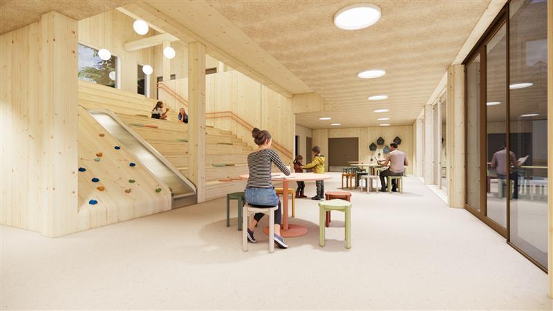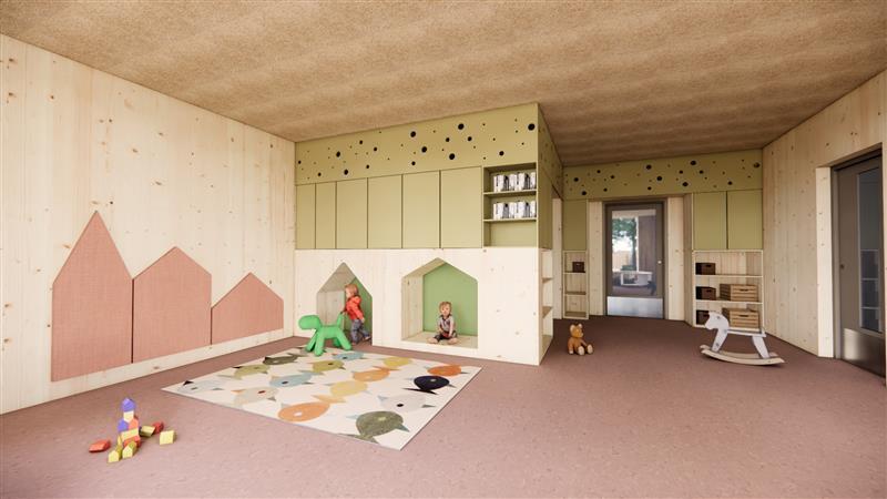 Barnehage og avlastning bygges sammen for å dele uteområder, fellesrom og tjenester. Prosjektet har fokus på kvalitet, bærekraft og brukerinvolvering.