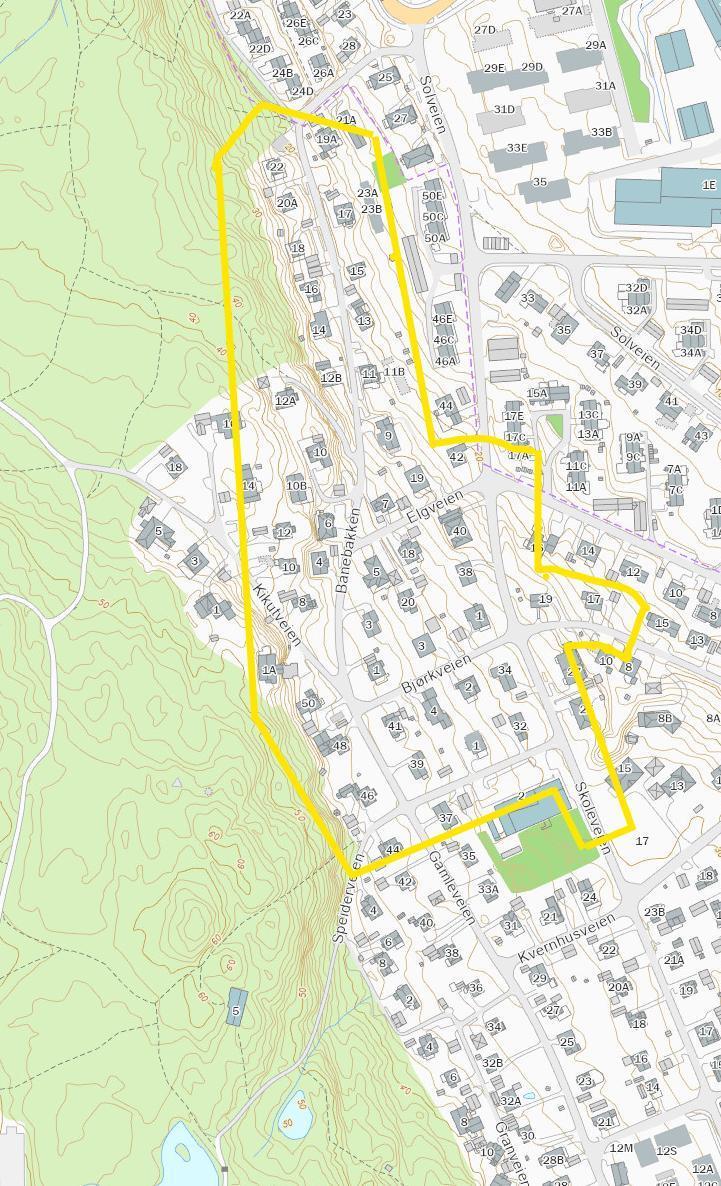 Kartutsnittet under indikerer avgrensingen av prosjektområdet. Det vil foregå innenfor det gule området.